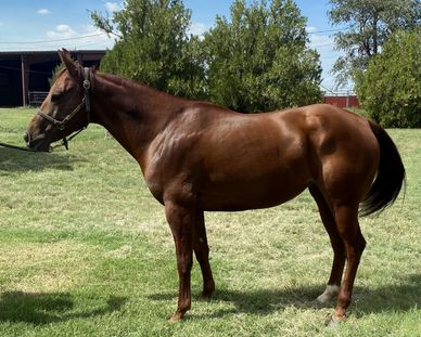 2016 Mare by ONE TIME PEPTO (Red Roan Stallion by the great PEPTOBOONSMAL with LTE of $331,097) and out of a One Time Soon Mare. Button has been used on several ranches in TX, CO and WY. She has a lot of go and could go in several directions including barrels, breakaway and goat tying. She stands tied, good with a bath and has been trailered many times. She is utd on shots, deworming and coggins.