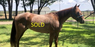 2019 Mare by CATS HILLBILLY (Red Roan Stallion by High Brow Cat) whose LTE is nearly $30,000 and out of a PEPCID Mare. She has had 4.5 months training. She has been ridden outside, in open pasture. She has an easy attitude, good mind and is easy to be around and catch. She stands tied, good with a bath and has been trailered many times. Cinco is utd on shots, deworming and coggins.